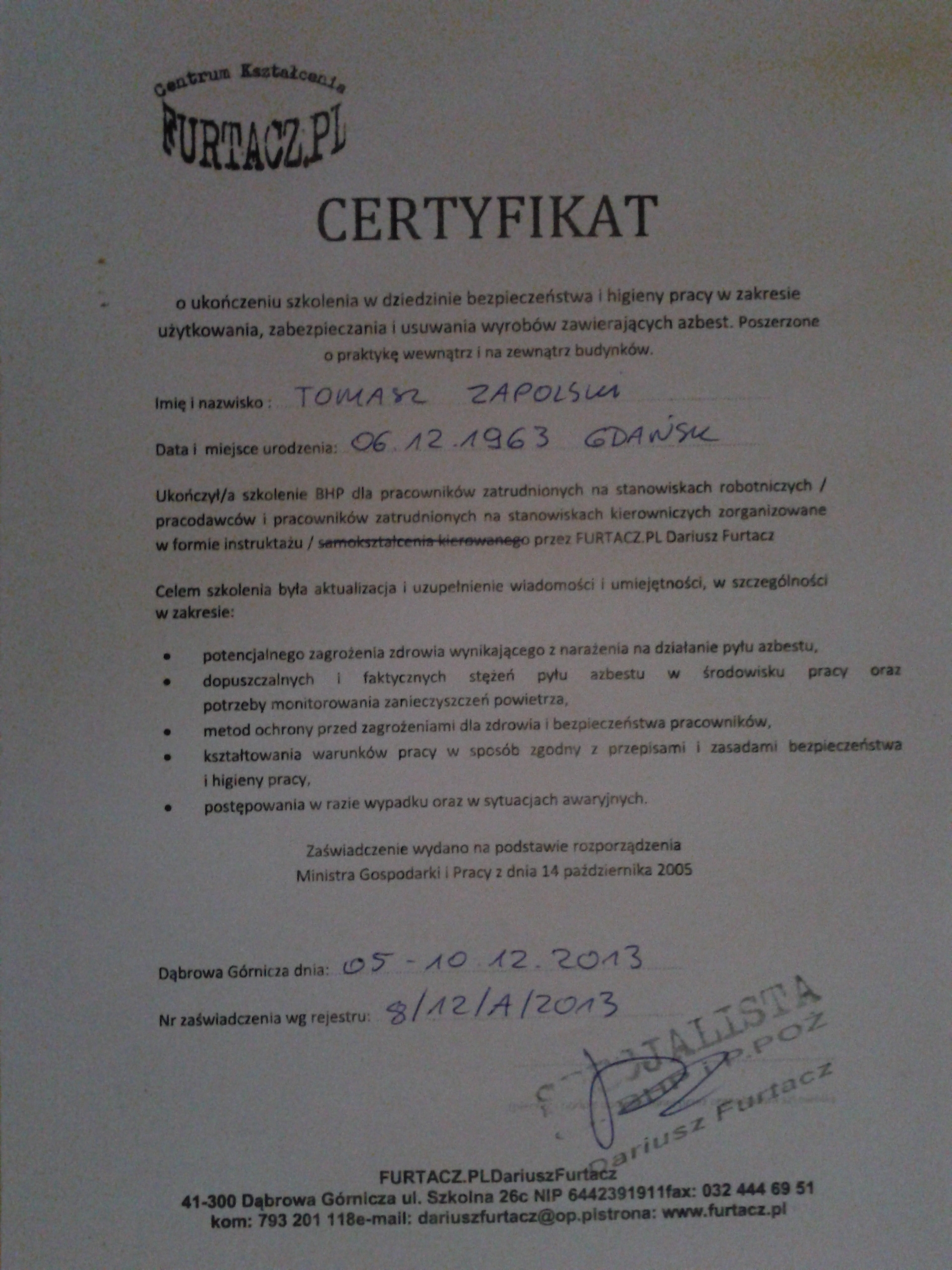 Certyfikat Eternit- Azbest