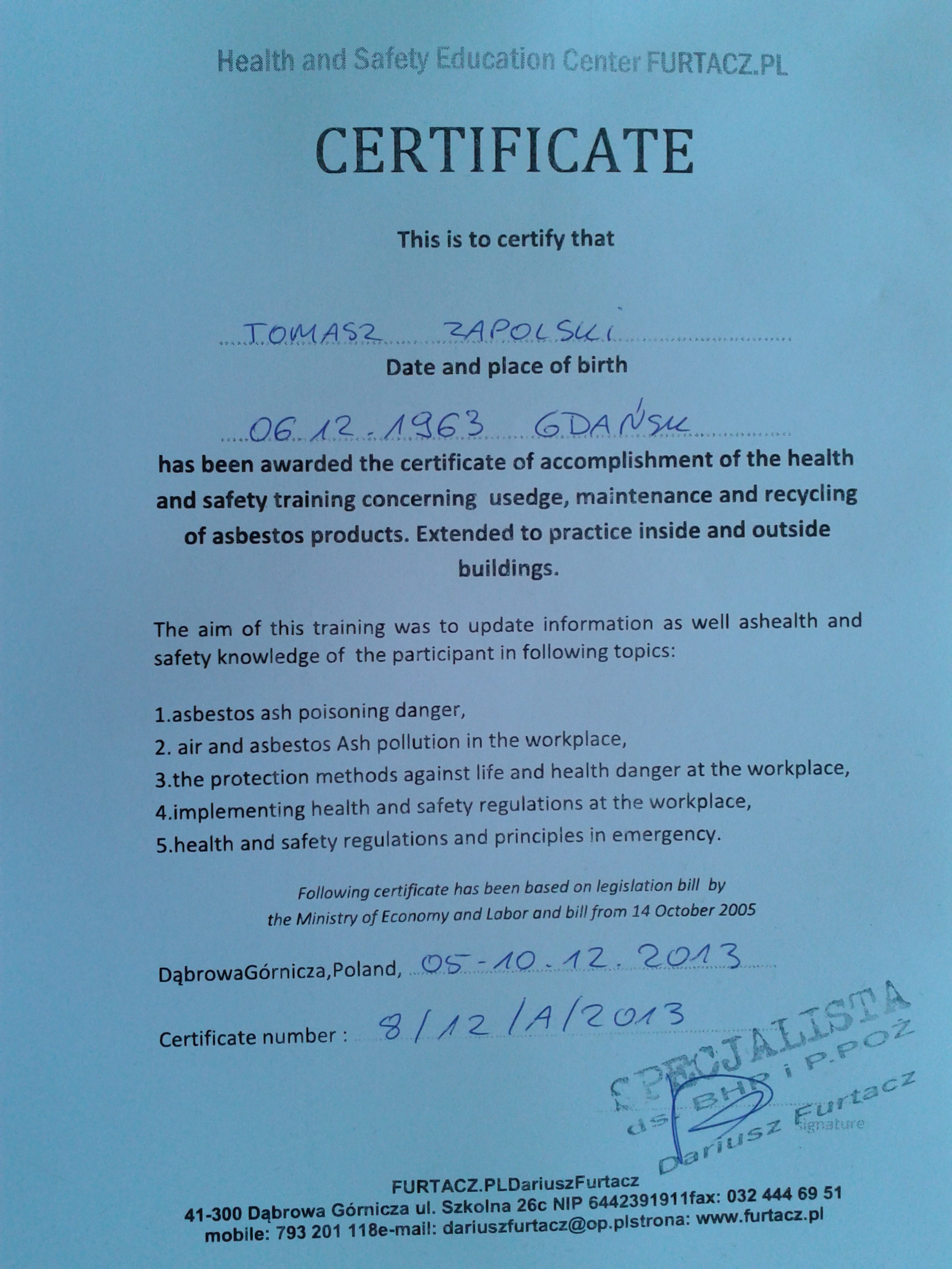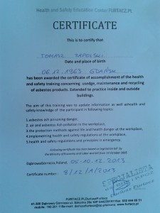 Replace asbestos certificate